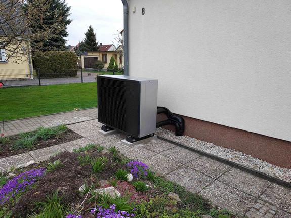 Das Außengerät fügt sich super in den Vorgarten ein. Es wurde platzsparend installiert, der vorhandene Gehweg zwischen dem Wohnhaus und den Beeten konnte genutzt werden. Er musste nicht verbreitert werden.