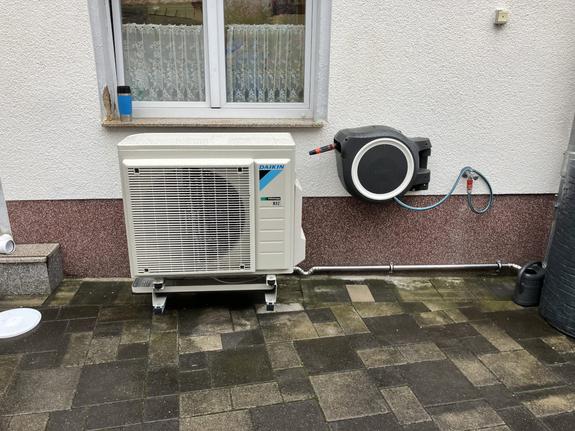 2024 wurde in einem sanierten Lehm-Altbau in Glesien eine Daikin Altherma 3R ECH₂O mit Außengerät installiert. Die Wärmepumpe versorgt den 2-Personen-Haushalt effizient über die bestehende Fußbodenheizung (Vorlauf <35°C) und den Heizkreis.