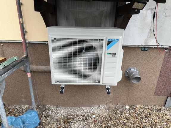 2024 wurde in einem Haus von 1973 in Kitzscher eine Daikin Altherma 3R F Wärmepumpe installiert. Die Anlage versorgt den 4-Personen-Haushalt effizient über die vorhandene Fußbodenheizung und deckt zuverlässig den Warmwasserbedarf.